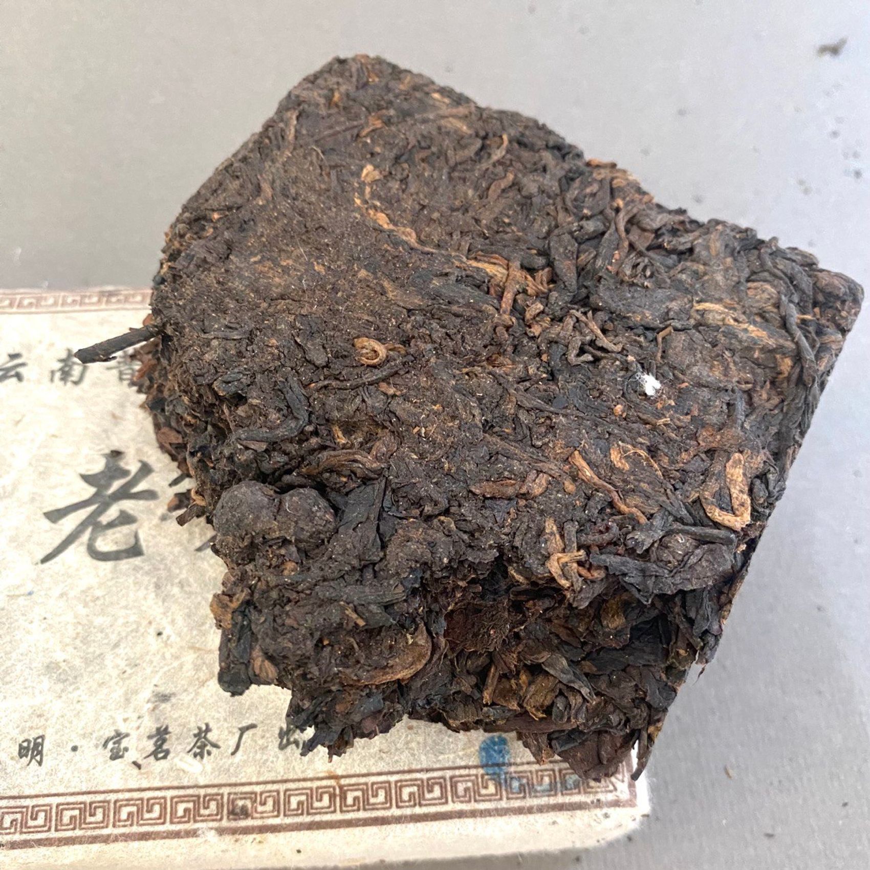 Прессованный в форме кирпича Шу пуэр завода Баомин.