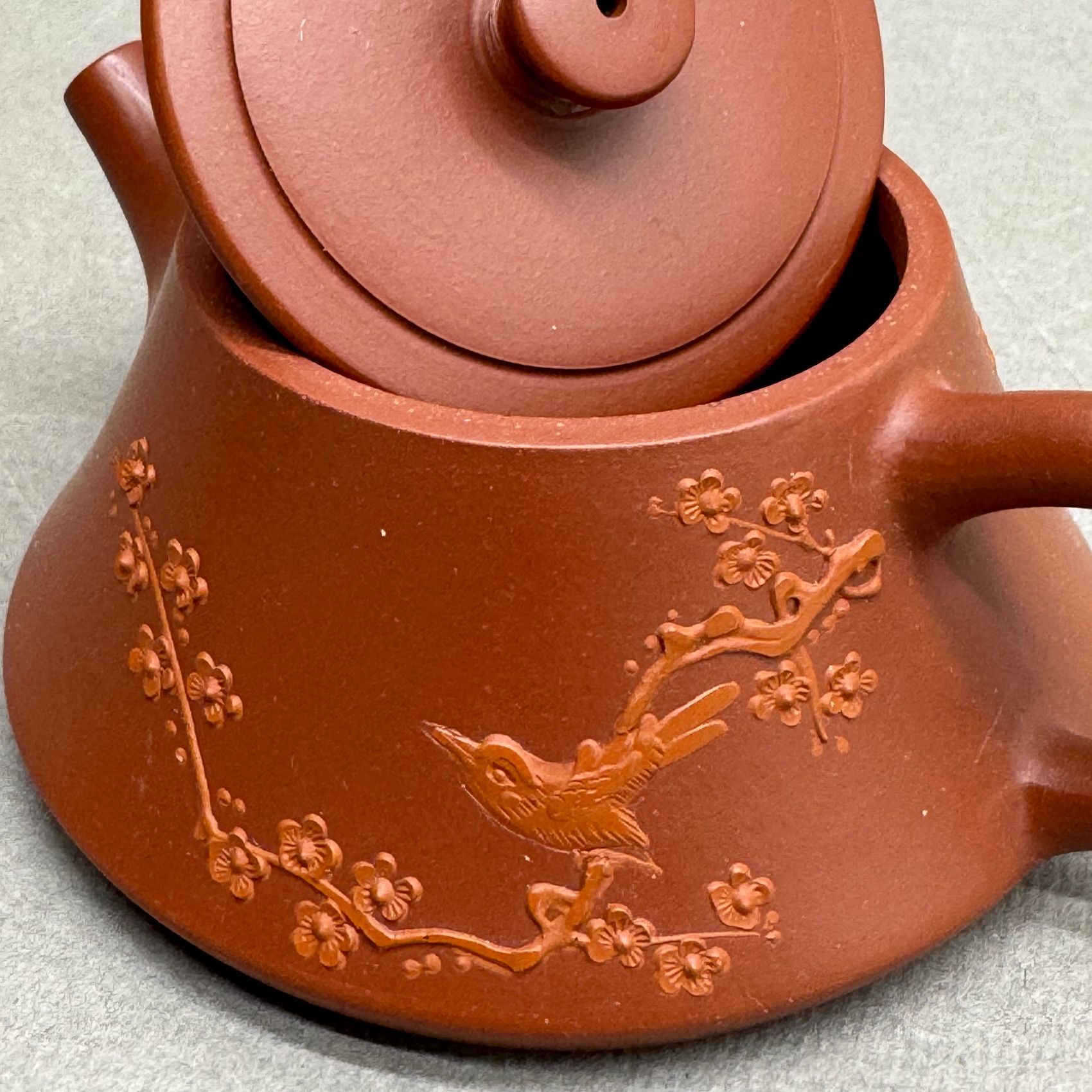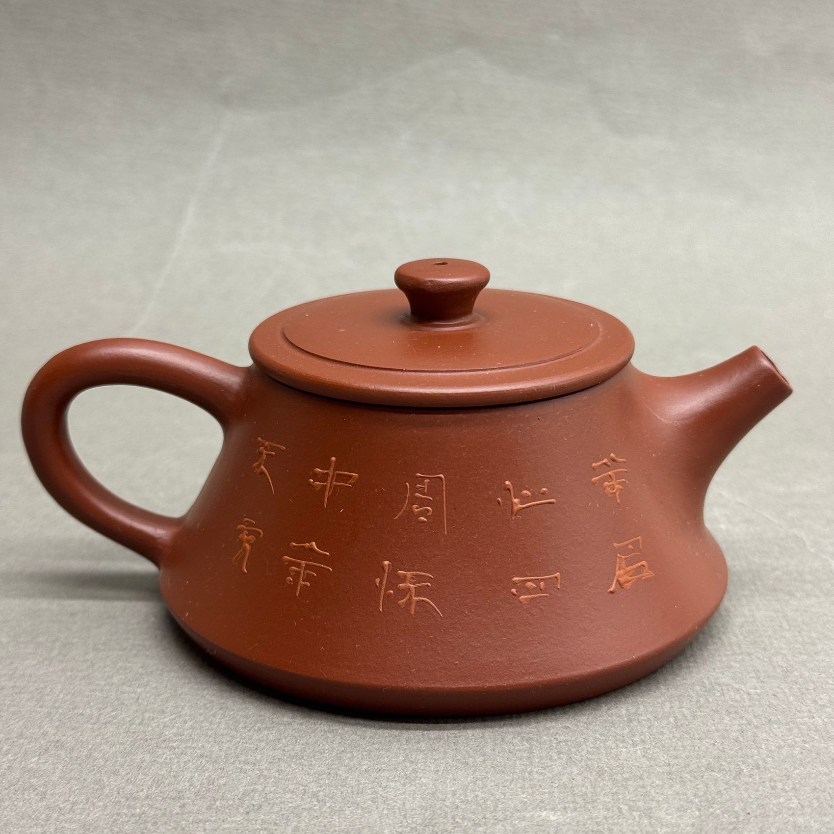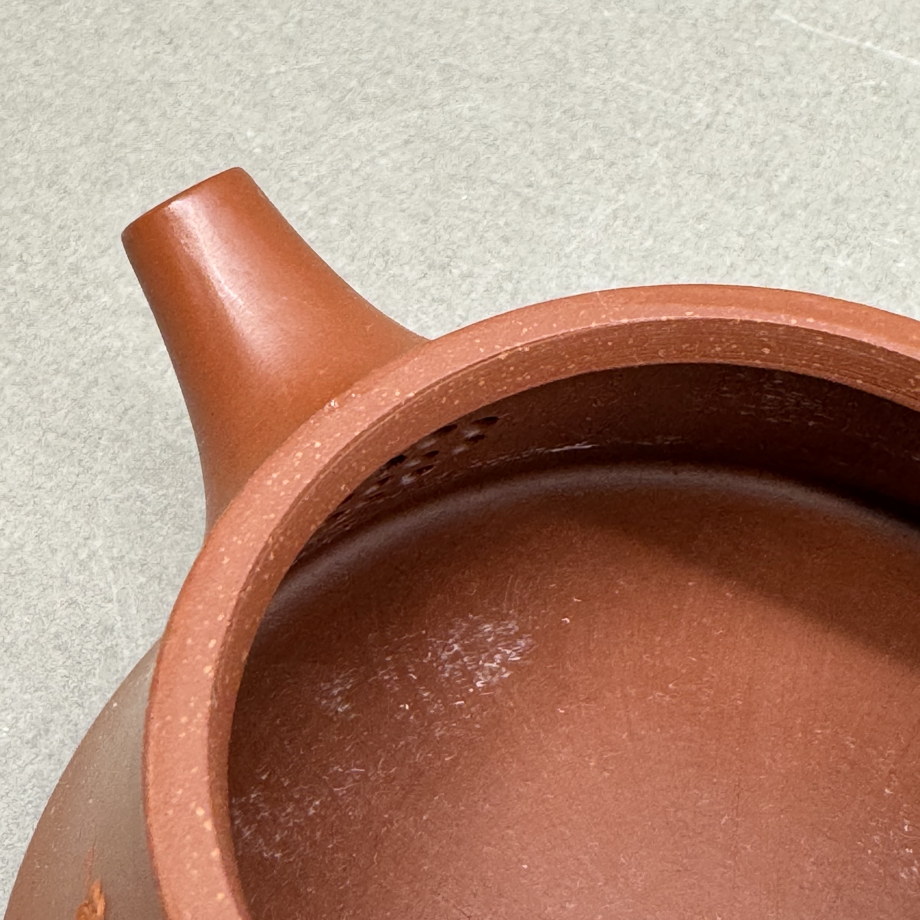 Чайник изготовлен из знаменитой исинской глины, которая добывается в виде не привычной пластичной массы, а горной породы. Каменная порода перетирается в порошок, затем разбавляется водой, и только потом с ней работает мастер. В результате обжига при высокой температуре (около 1200 ?С) получается высокопрочный чайник, обладающий уникальными свойствами: он достаточно плотный, чтобы не пропускать воды, и достаточно пористый, чтобы настой «дышал». При этом чайник не имеет постороннего запаха, который мог бы передаться чаю.