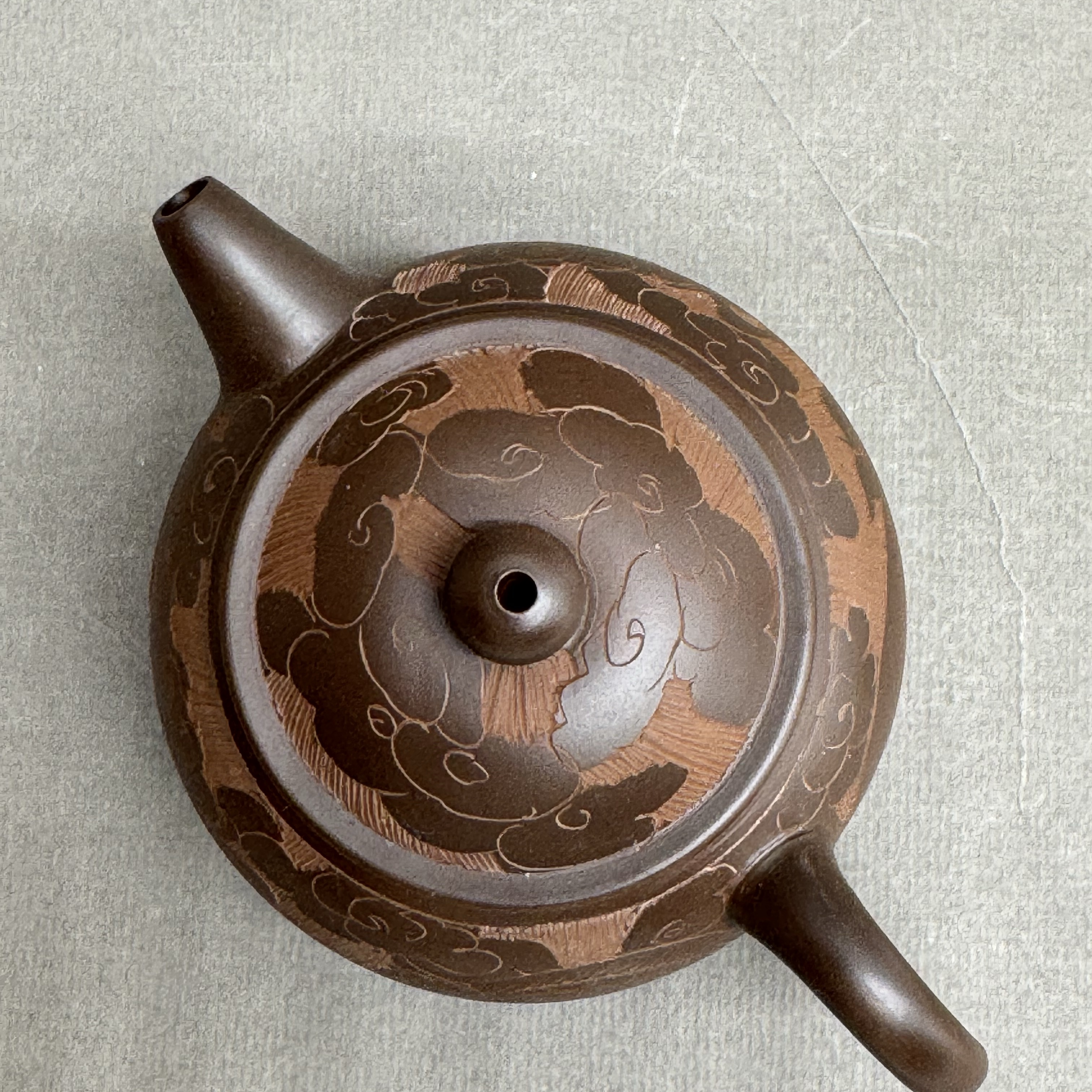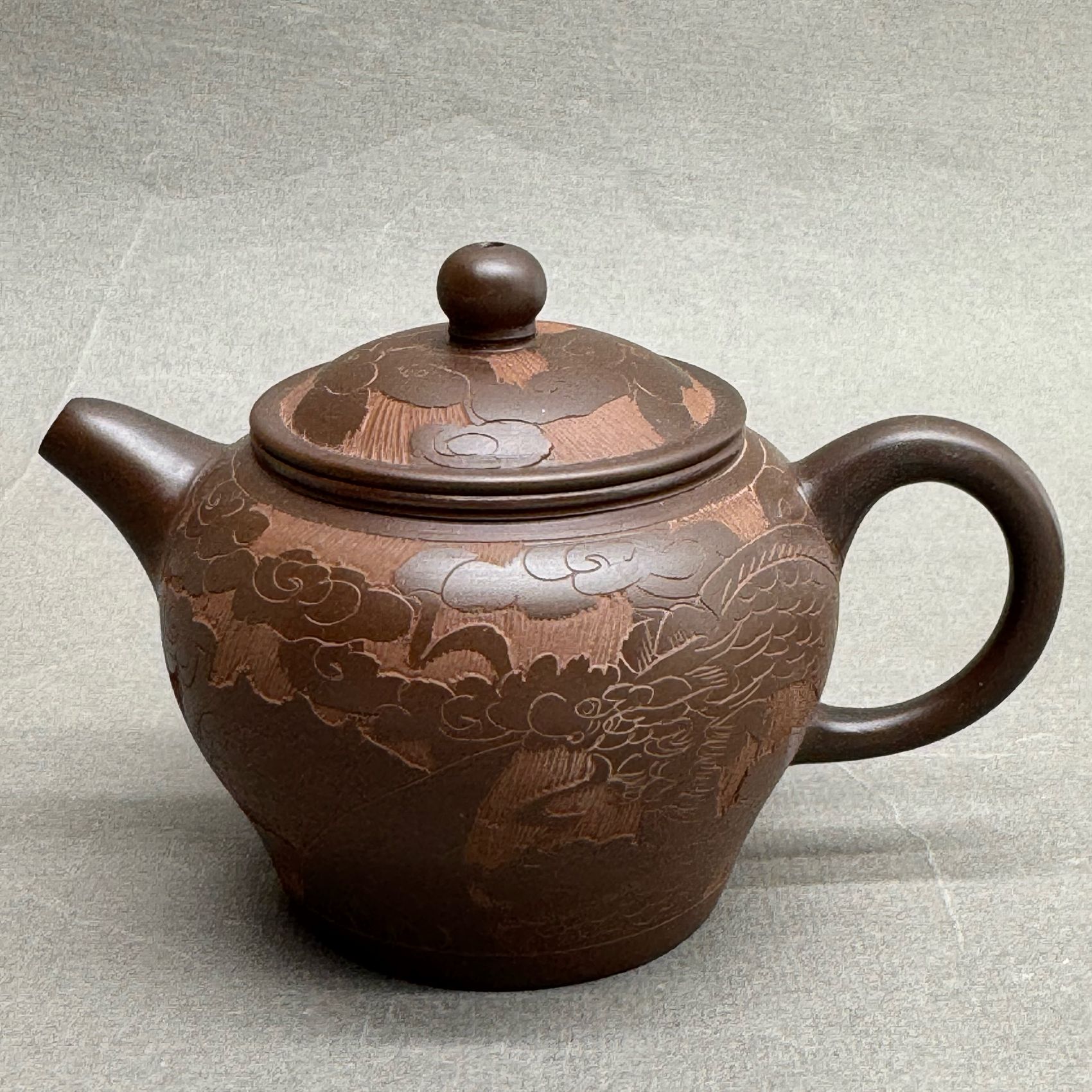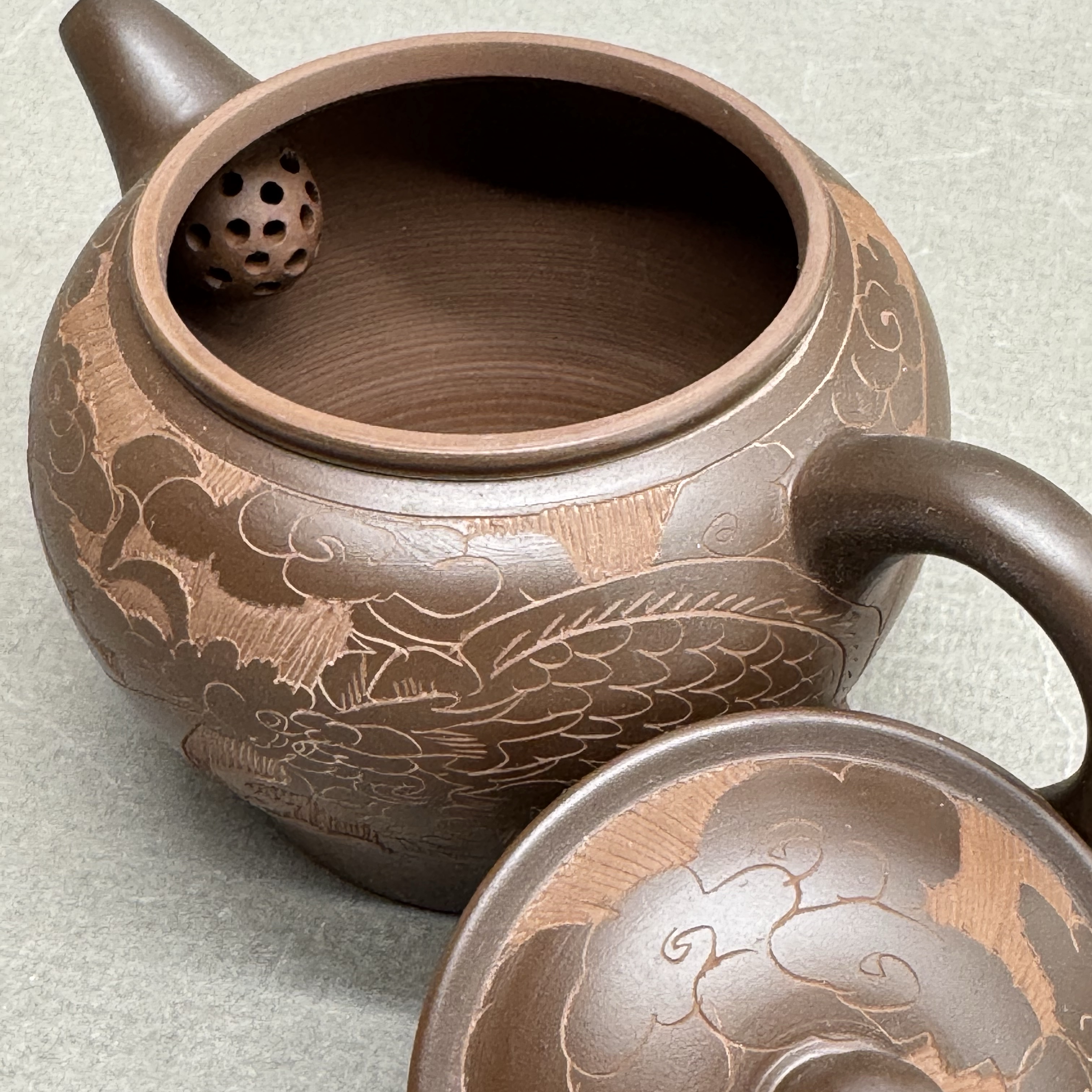 Чайник изготовлен из знаменитой исинской глины, которая добывается в виде не привычной пластичной массы, а горной породы. Каменная порода перетирается в порошок, затем разбавляется водой, и только потом с ней работает мастер. В результате обжига при высокой температуре (около 1200 ?С) получается высокопрочный чайник, обладающий уникальными свойствами: он достаточно плотный, чтобы не пропускать воды, и достаточно пористый, чтобы настой «дышал». При этом чайник не имеет постороннего запаха, который мог бы передаться чаю.