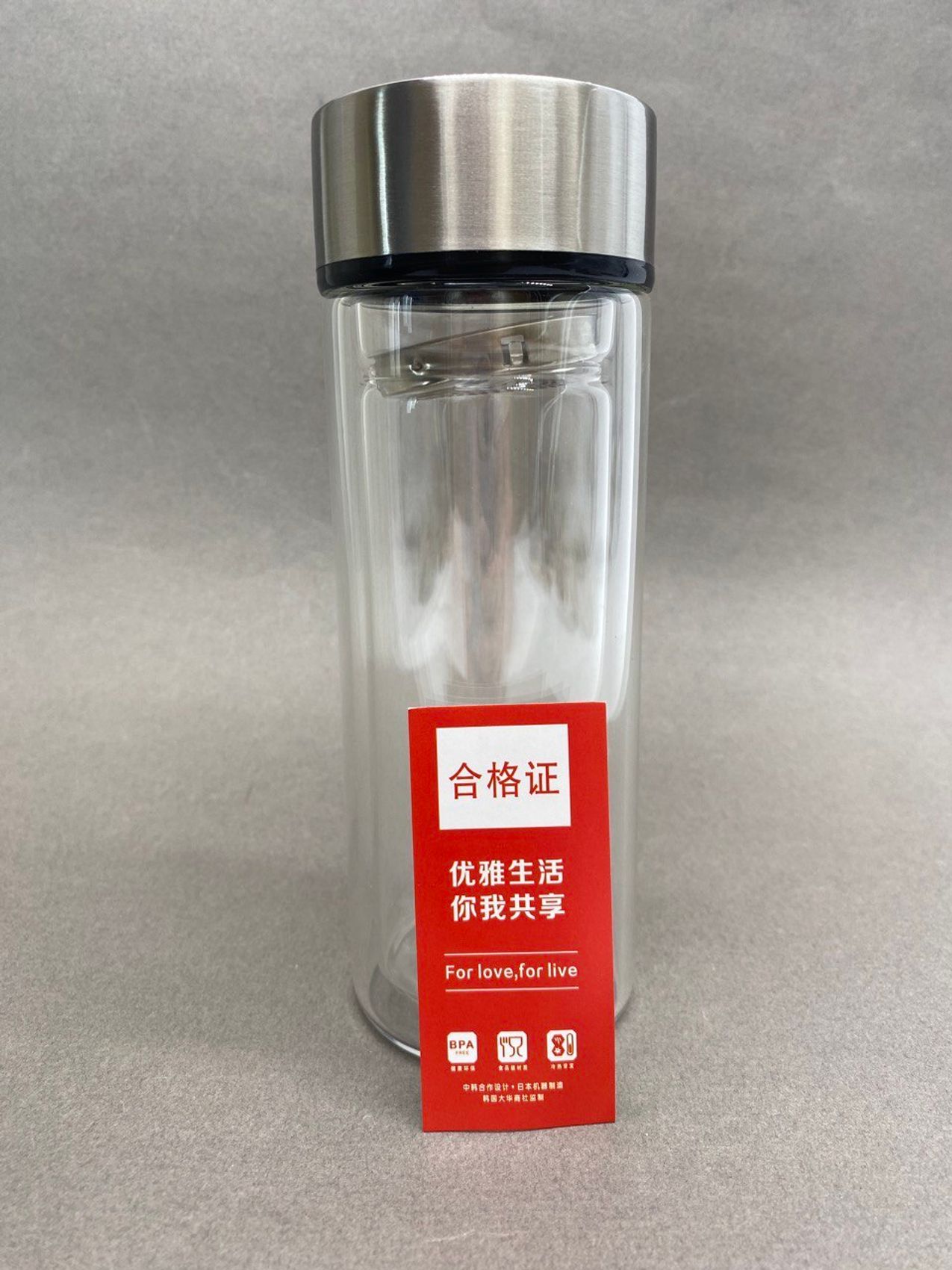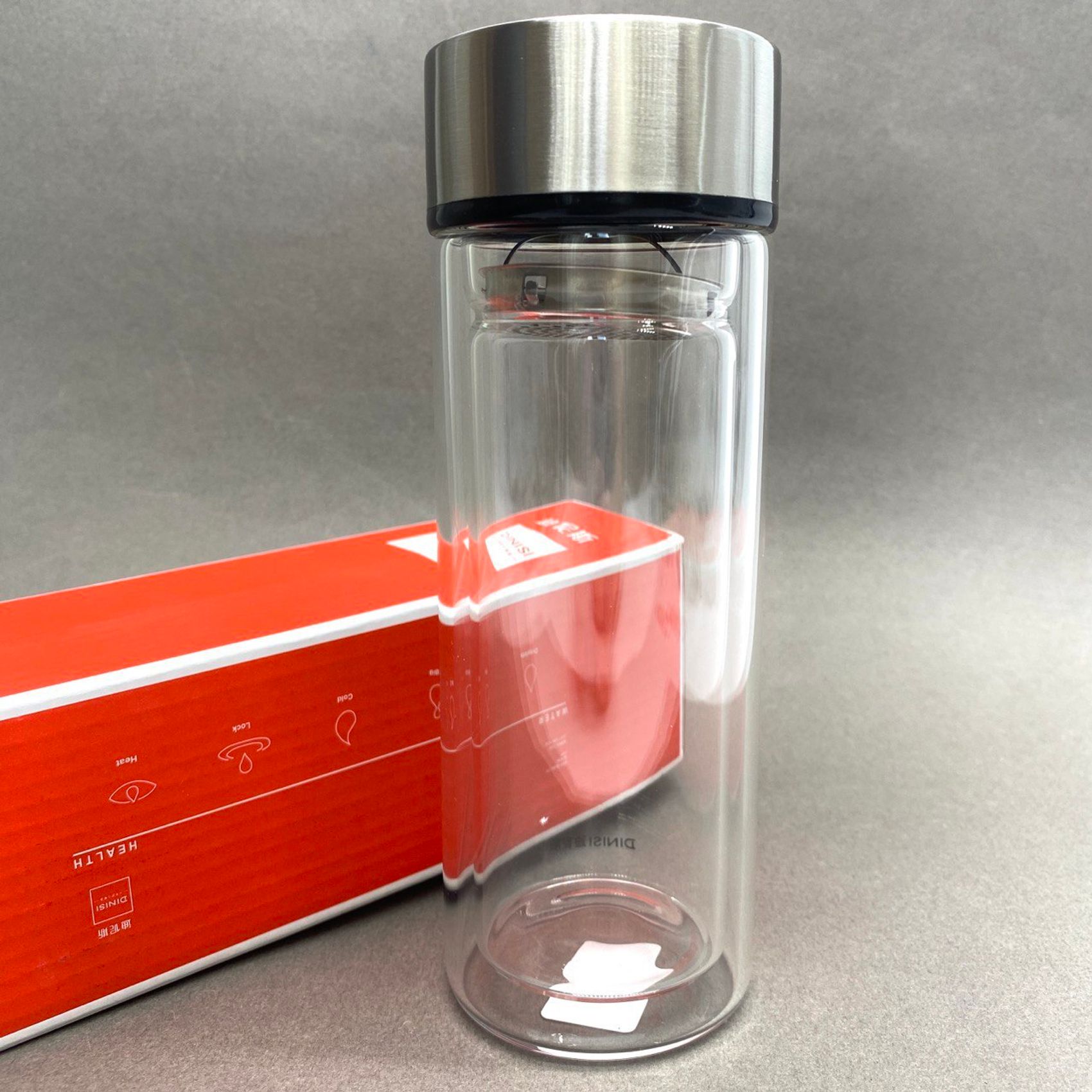 Фляга-термос из двухслойного стекла с металлическим фиксирующимся ситечком. Предназначена для заваривания чая и поддержания температуры. Предполагает два способа заваривания: 1. Установить ситечко, зафиксировать его, насыпать сухой чайный лист, залить водой нужной температуры, перевернуть, выждать необходимое для настаивания время, снова перевернуть, открыть крышку, вынуть ситечко. Чай готов, можно пить.2. Засыпать сухой чайный лист, установить и зафиксировать ситечко, залить водой требуемой температуры, выждать необходимое время, открыть крышку, разлить чай по чашкам или пить прямо из фляги. Двойное стекло, во-первых, не дает обжечь руки, во-вторых, сохраняет температуру чая. Давайте беречь природу вместе - используйте стеклянную флягу-термос вместо одноразовых пластиковых и бумажных стаканов.