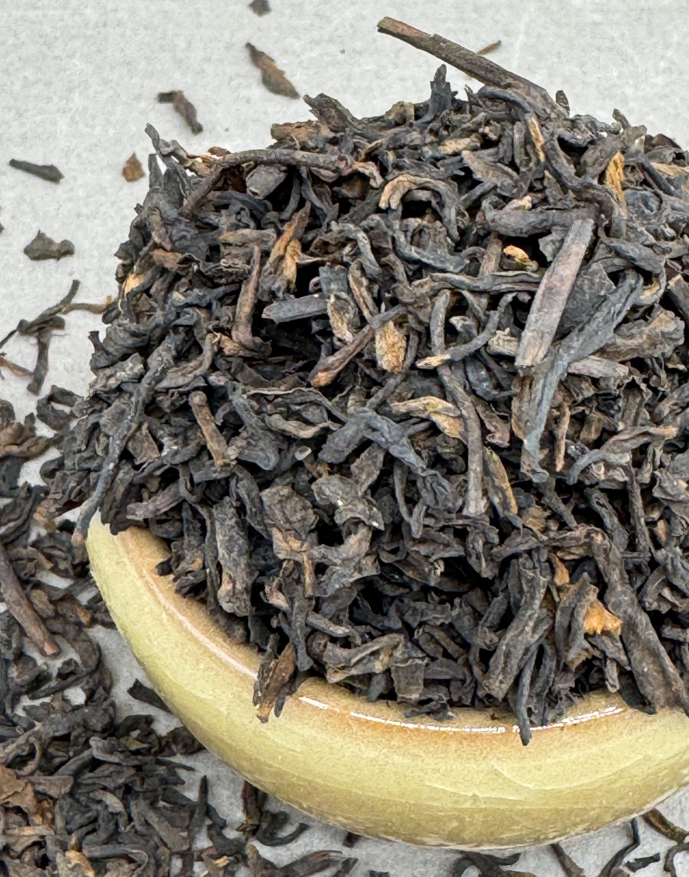 Черный чай из Учжоу, Гуаньси. Один из представителей состаренных черных чаев. Делается по технологии влажного состаривания в кучах. В отличие от Шу пуэра проходит дополнительную стадию выдерживания в специальном помещении при высокой влажности. Вкус сладковатый с отчетливыми нотками прелости, чернослива и сухофруктов. Аромат плотный, землистый со сладкими фруктовыми тонами. Согревающий и тонизирующий чай.